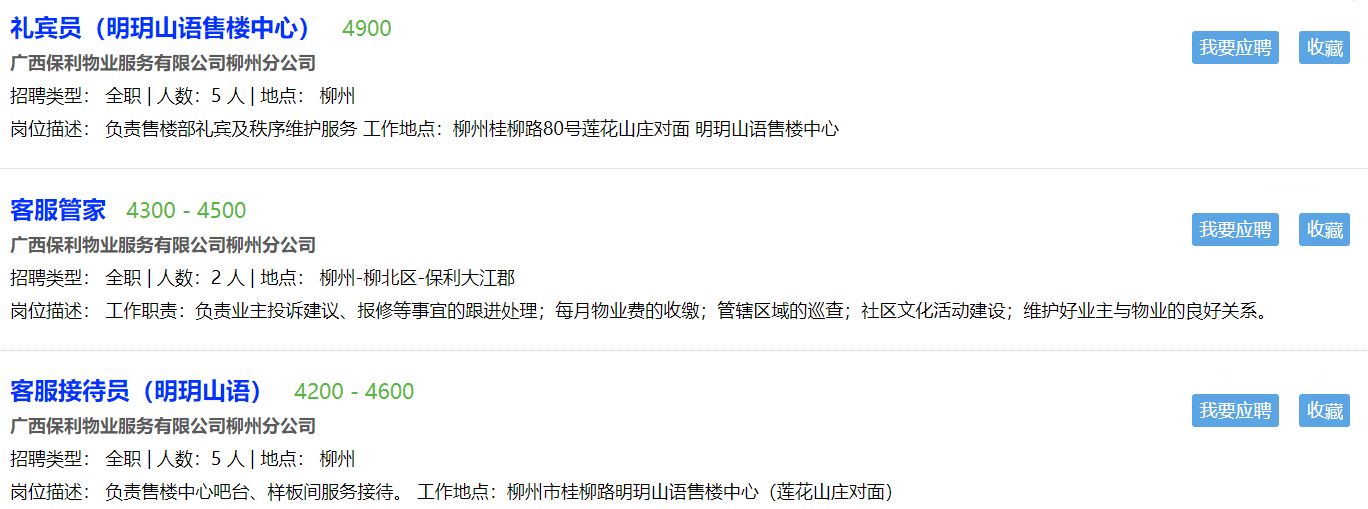 下面是小編為大家收集到的柳州保利物業(yè)服務有限公司的最新招聘的薪資待遇,大家感興趣的話可以點擊下方圖片的鏈接到桂聘上查看。